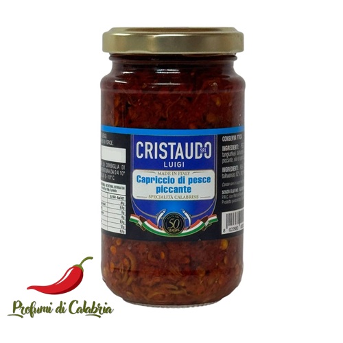 Il capriccio di pesce piccante è un’eccellenza molto apprezzata. Per realizzare questa gustosa proposta il pesce viene lavorato secondo un’antica tradizione artigiana del sud della Calabria che realizza una proposta genuina senza conservanti e additivi.