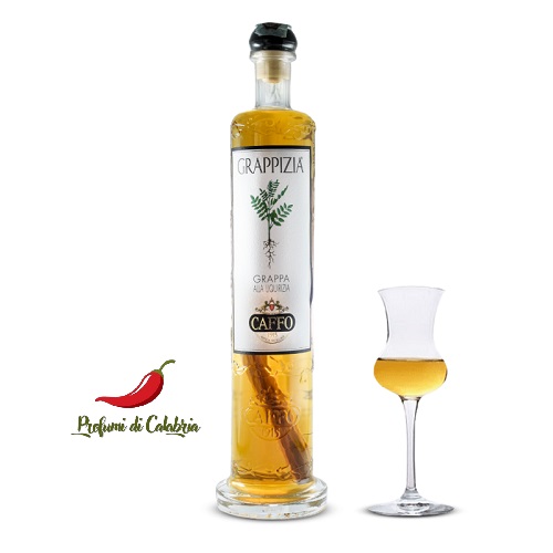Grappa ricavata dall’infusione della radice di liquirizia della varietà Cordara in una corposa acquavite, ideale per chiudere piacevolmente, sfruttando al massimo le sue proprietà digestive, un pranzo abbondante a base di piatti della tradizione mediterranea. Caratteristica la bottiglia contenente all’interno una stecca di liquirizia, gradazione alcolica di 42 volumi.