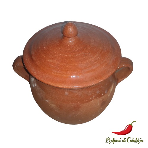 Pentola alta in Terracotta interamente fatto a mano diametro 16,50 cm, h 19 cm.